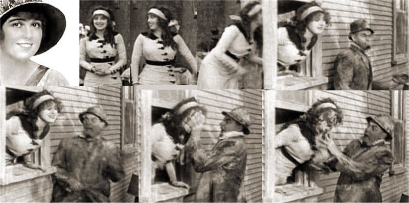 The pioneering film comedian Ben Turpin is generally credited with taking the first cinematic pie-in-the-face (the 1909 film short 'Mr Flip') in a short 'pie fight sequence. However, it would not be until several years later that the gag would be given a fresh face, so to speak! Sometime around 1913, a young actress named Mabel Normand (soon to become American cinema's first 'queen of comedy'), working under contract to Mack Sennett (and soon to become his lover), became the recipient of a blueberry 'pie-in-the-face'. This sight gag occurs in two different Keystone shorts--'The Ragtime Band' and 'A Muddy Romance'-- both of which date to 1913-14. This simple gag--shockingly applied to the face of America's emerging comedic sweetheart (Mabel)--created a sensation throughout the relatively new, film-going public.